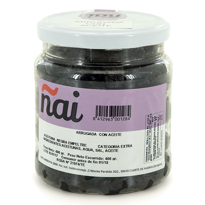 Disfruta con estas aceitunas del Bajo Aragón, una aceituna negra arrugada con hueso. Estas aceitunas negras arrugadas han sido seleccionadas por su tamaño y su color. Disfruta de estas aceitunas del Bajo Aragón en un vermut, ensaladas...