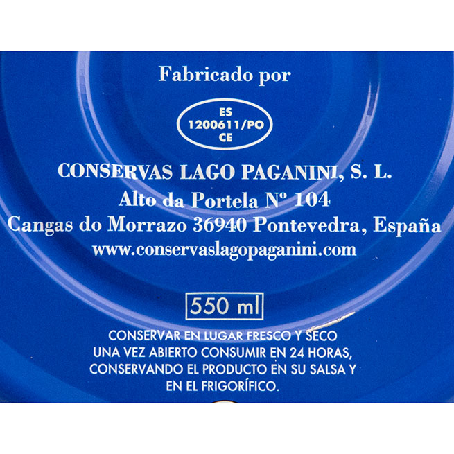 Razón social del fabricante/envasador: CONSERVAS LAGO PAGANINI S.L.