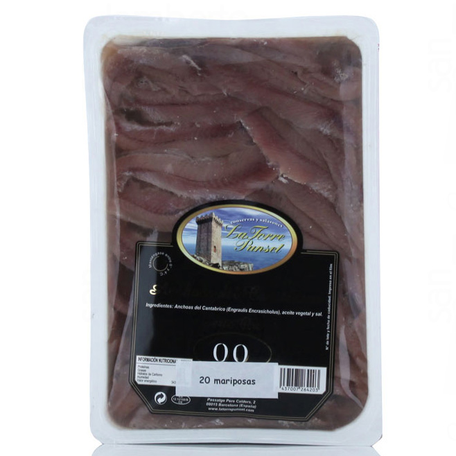 Descripción: tarrina de anchoas del cántabrico en agua con sal y aceite vegetal.