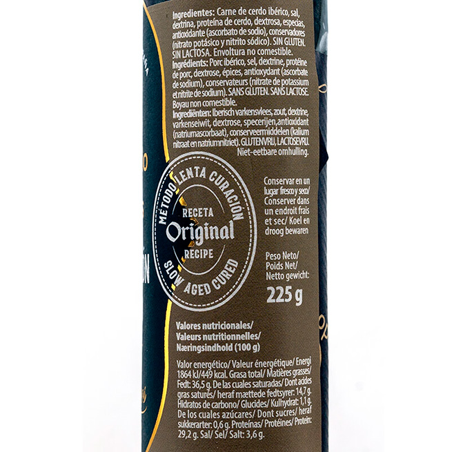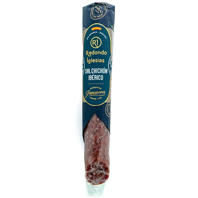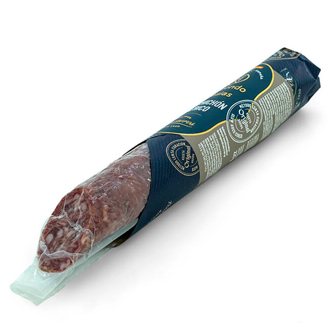Descripción: Candela salchichón ibérico. Elaborado a partir de la mejor selección de carne ibérica y adobado con especias de primera calidad.