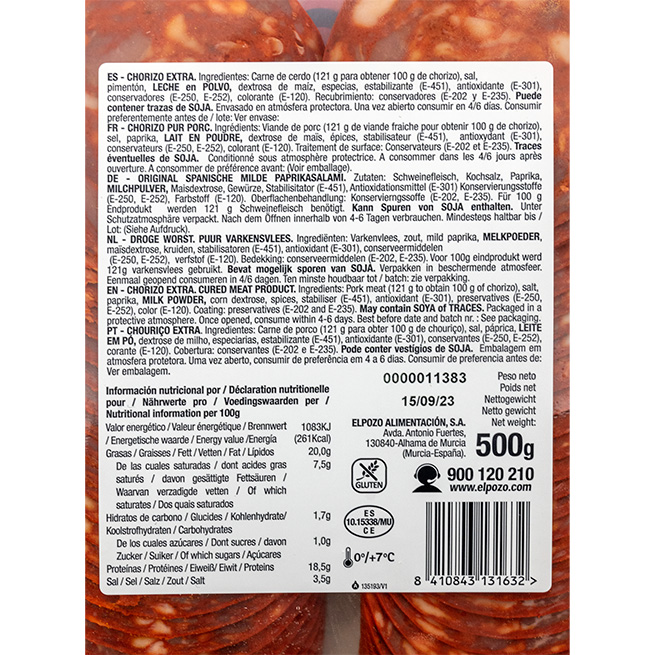 Chorizo extra loncheado El Pozo