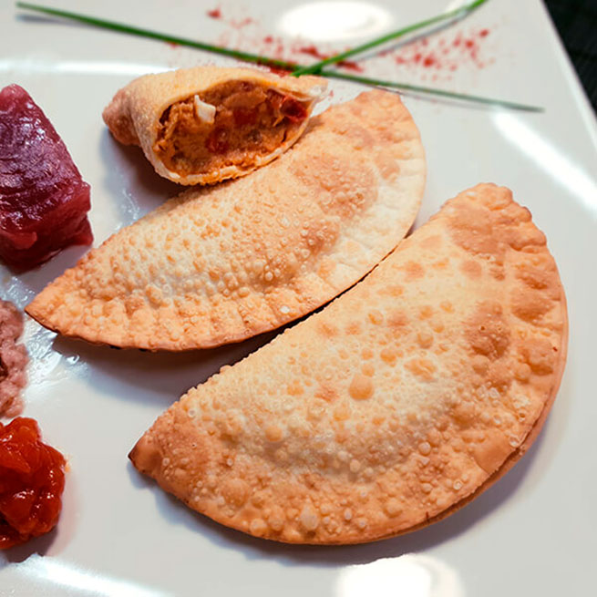 Descripción: Empanadilla artesana atún efecto Gourmet. Con un combinado de atún fresco en aceite, pimiento rojo, huevo cocido, aceitunas, cebolla y tomate, rellenos en nuestras obleas. La característica principal de nuestras empanadillas, es que se pueden apreciar los sabores de todos los ingredientes.