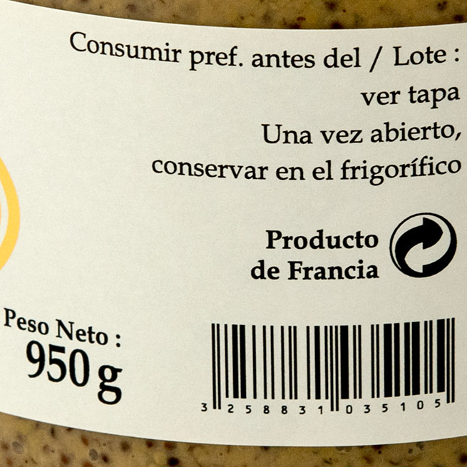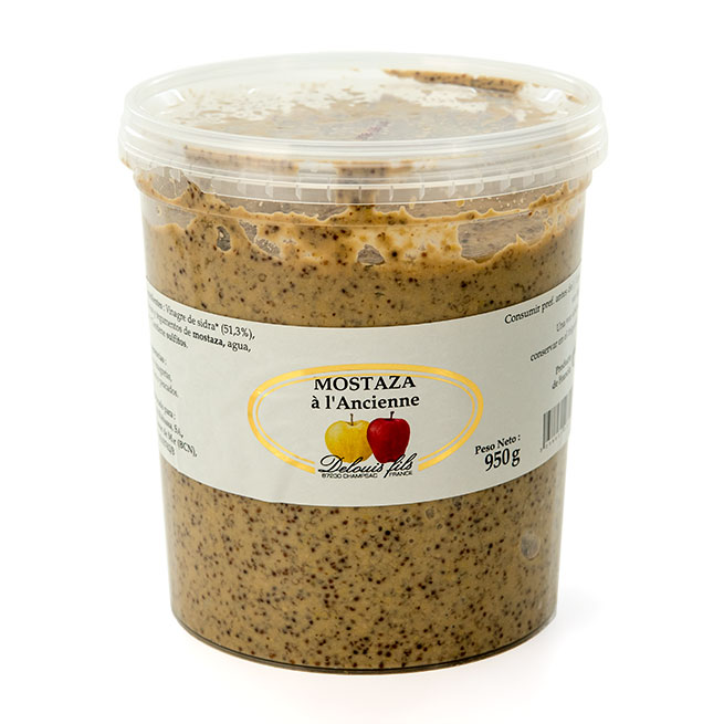 Mostaza Anciene a la sidra de 950Gr de la casa Delouis Fils. .. La mostaza Ancine a la sidra es conocida en todo el mundo y de muy rico sabor. Está mostaza se hace desde 1840 en las instalaciones de Fallot en Beaune. Las semillas son seleccionadas cuidadosamente y aplastadas en un molino de piedra que evita el calentamiento de las semillas y conserva todo su sabor. .. Está mostaza es ideal para aportar el sabor a su carne, también puede provar con un plato de carne o una col. .. Ingrediente: Granos de mostaza, vinagre de sidra, agua, sal marina y sulfitos. .. Sugerencias: Para vinagretas, carnes o pescados. .. Formato: 200Gr. .. Conservación: Una vez abierto cerrrar el enbase conservar en el frigorífico.