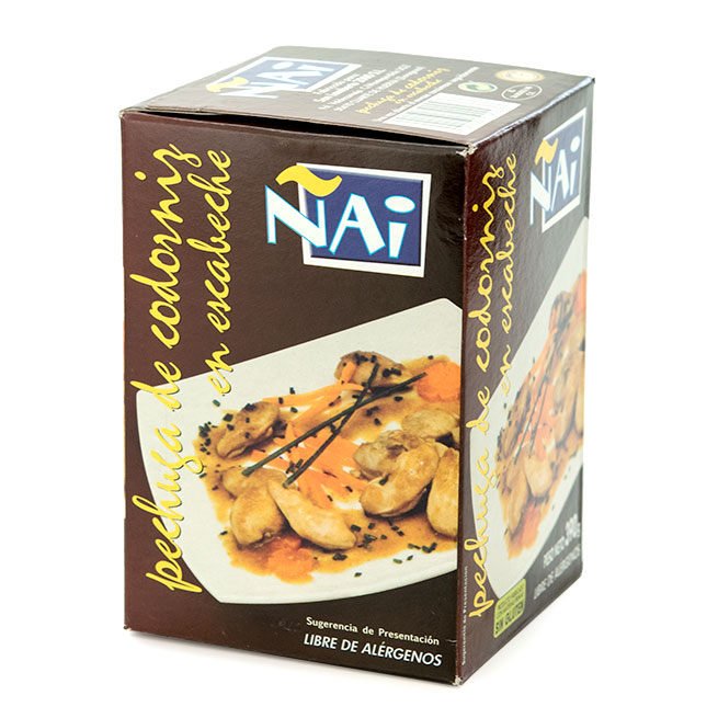 Descripción: Delicioso plato de pechugas de corniz de la marca Ñai elaborado de manera artesanal a fuego lento, los ingredientes utilizados para elaborar este plato son de muy buena calidad. Para conseguir que no pierda su sabor y frescura se enlatan para llegar a su mesa conservando todo su sabor. Ideal como segundo plato. Este plato contiene la suficiente ración para dos comensales.