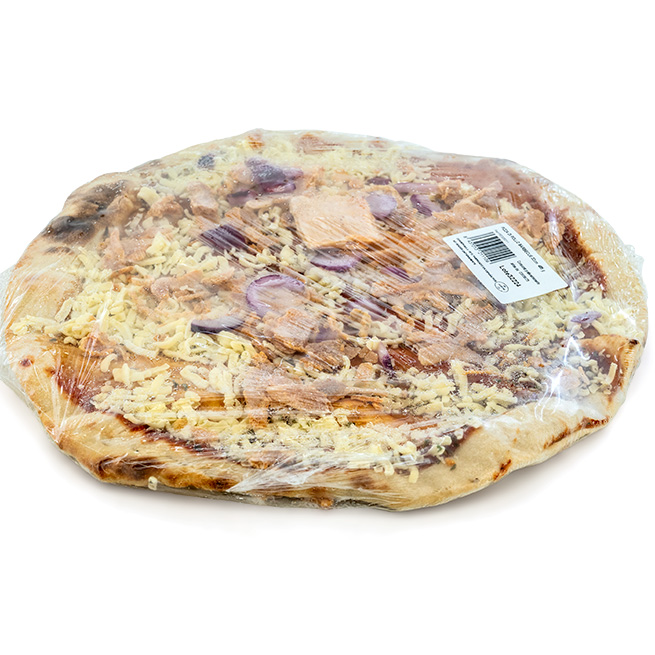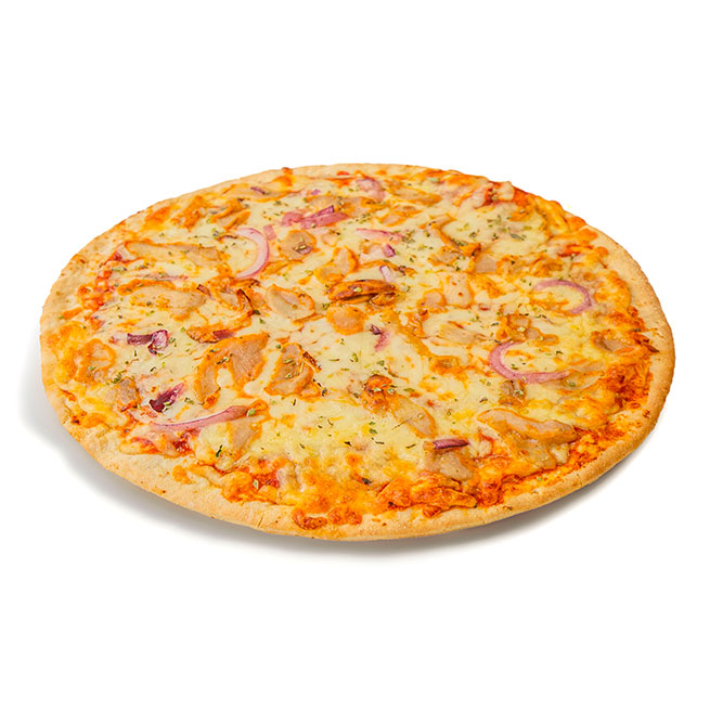 Descripción: Pizza Pollo barbacoa, congelada, Nuestras pizzas siempre quedan crujientes, con una textura alveolada e irresistible. Ofreciendo una apariencia totalmente artesana.