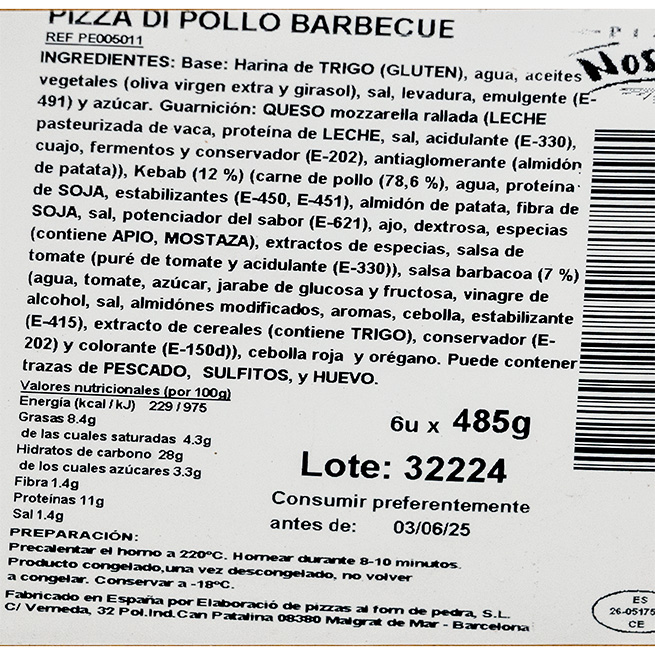 Formato: Pizza 505Gr, 32Cm diametro. Caja 6Uds
