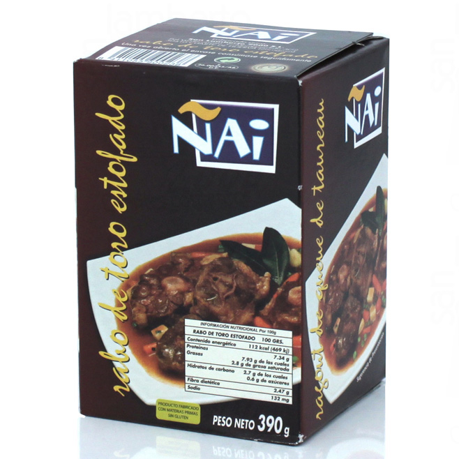 Delicioso plato de rabo de toro de la marca Ñai elaborado de manera artesanal a fuego lento, los ingredientes utilizados para elaborar este plato son de muy buena calidad. Para conseguir que no pierda su sabor y frescura se enlatan para llegar a su mesa conservando todo su sabor. Este plato contiene la suficiente ración para dos comensales.