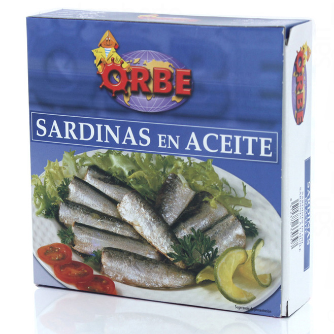 Descripción: Selección de sardina en aceite de la marca Orbe .