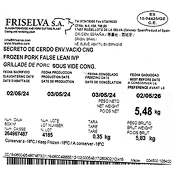 Secreto cerdo blanco 3Uds 2Kg aprox Congelado