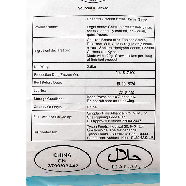 Tiras de pollo asadas 2.5 Kg Aproximados Congelado