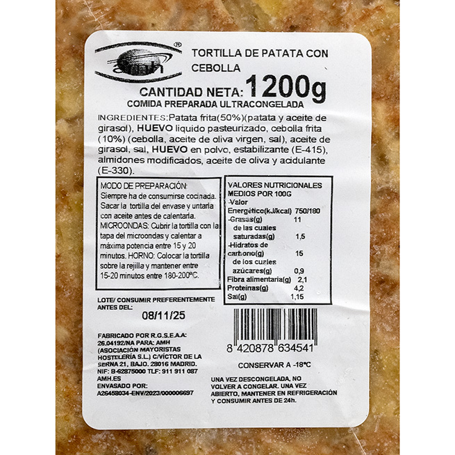 Descripción: Tortilla de patata con cebolla congelada.